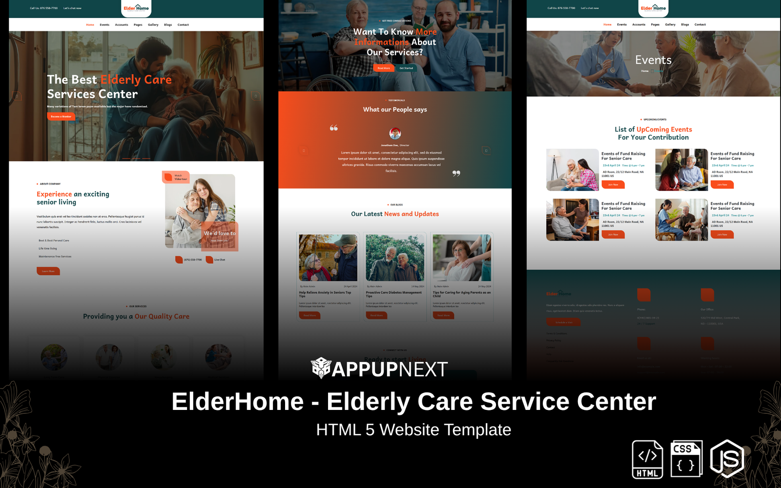 ElderHome - Elderly Care Service Center - HTML 5 Website Template - v1